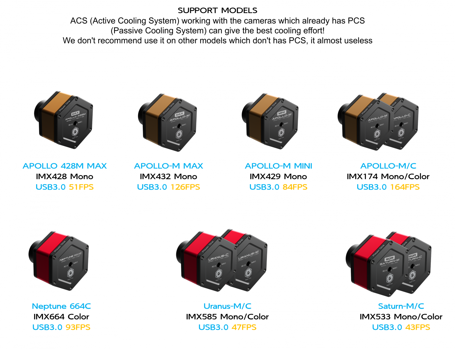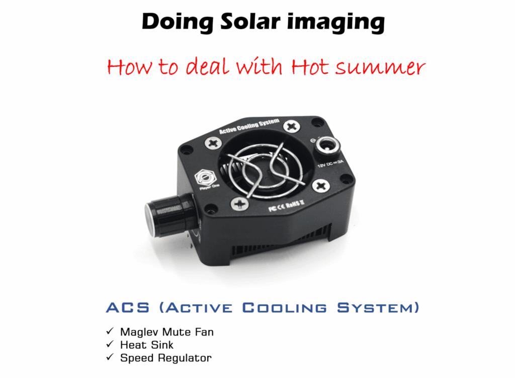 ACS (Active Cooling System) é um sistema externo de resfriamento por ar, projetado para câmeras solares e câmeras planetárias de grande formato.
