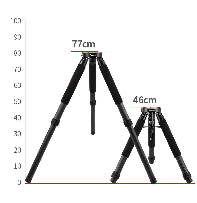 O design com pernas retráteis permite ajuste prático de altura, adaptando-se a diferentes terrenos e configurações de equipamento. Mesmo com estrutura compacta quando fechado, o CF50 mantém elevada rigidez estrutural e ótima absorção de vibrações, características essenciais para garantir imagens mais nítidas e uma experiência de observação mais estável.